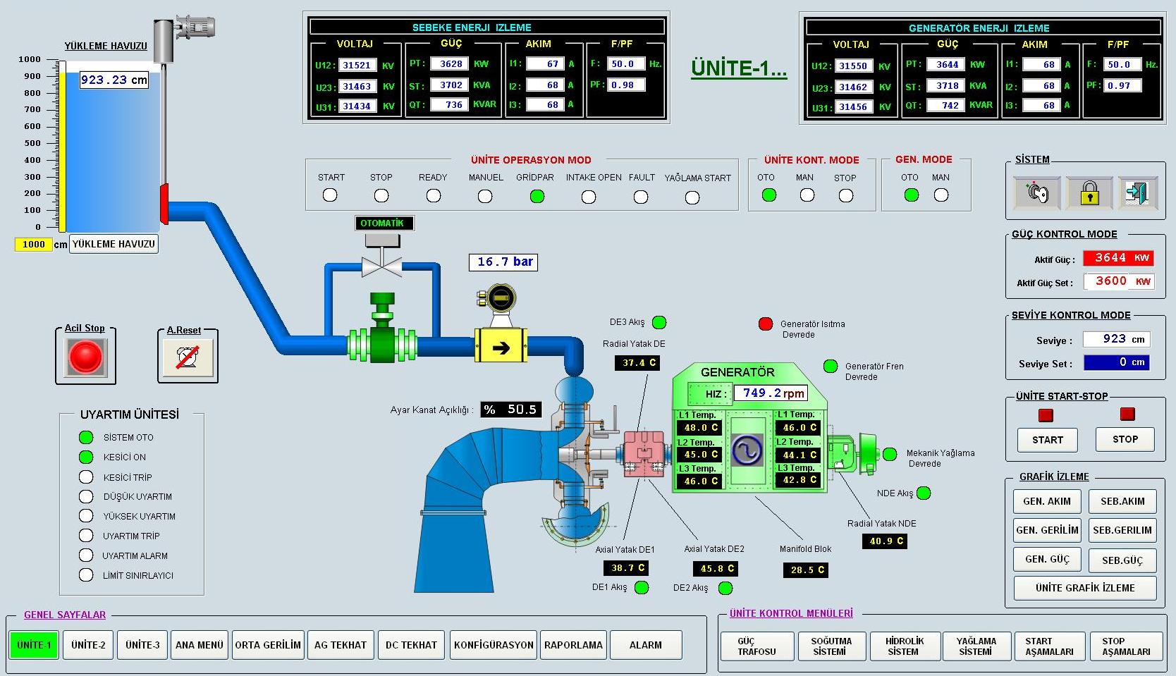 • Tesisin SCADA sistemi ve mimik kumanda masası üzerinden izlenerek kumanda edilmesi,